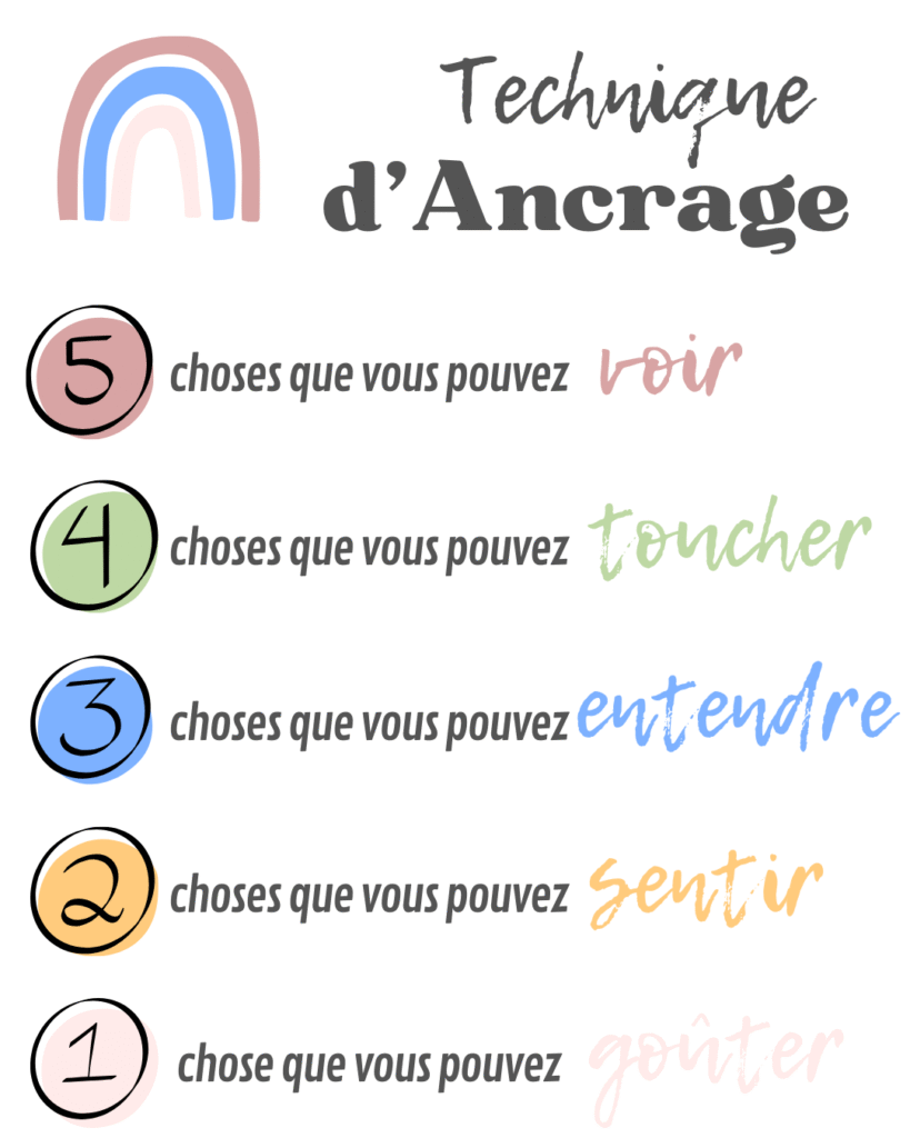 Les techniques d’ancrage servent à revenir au moment présent quand quelque chose déborde à l’intérieur. Elles sont très utilisées quand une personne se sent envahie par ses émotions, son anxiété ou ses pensées.